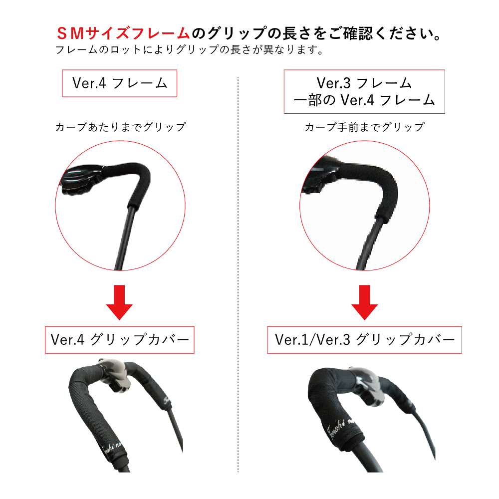 SMサイズフレームご使用の方へ SMサイズフレームのグリップの長さをご確認ください。 Ver.4フレームはVer.3フレームよりもグリップが長くなっておりますが、一部ロットのフレームはグリップがVer.3と同じ長さとなっております。お持ちのフレームおグリップをご確認の上ご購入くださいませ。 ※グリップの長さによる使用上の影響はございませんので、安心してご使用ください。