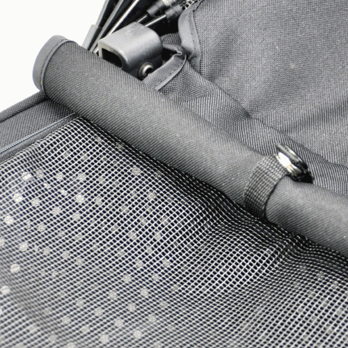 『ドームを全開にした際にも、顔が出ない様にしたい。』『ドームを開けて、バッグ自体の高さを低くして使いたい。』『公共機関での移動時、ドームタイプのカートはどうしても大きさ(バッグの高さ)が気になる。でも、ドームを開けるとカバーができない。』そんなお悩みを解決!カート用/フラットカバー。メッシュ部分は強化ラバーを採用。勿論、メッシュ部分を隠す事も可能。また、ショルダーベルトの使用も可能で、持ち運びに時にも便利。 メッシュカバー、目隠しカバーの2重構造で使い勝手抜群!!