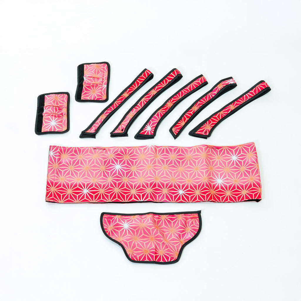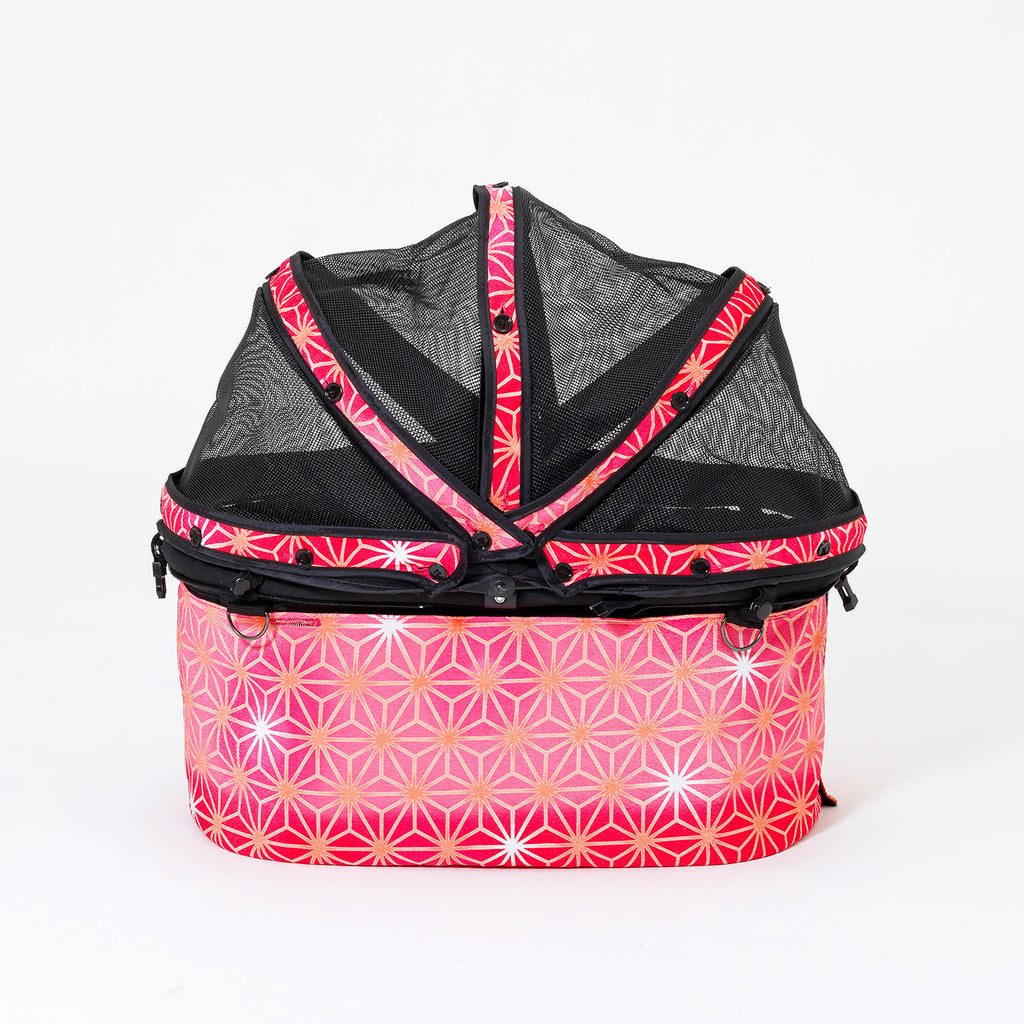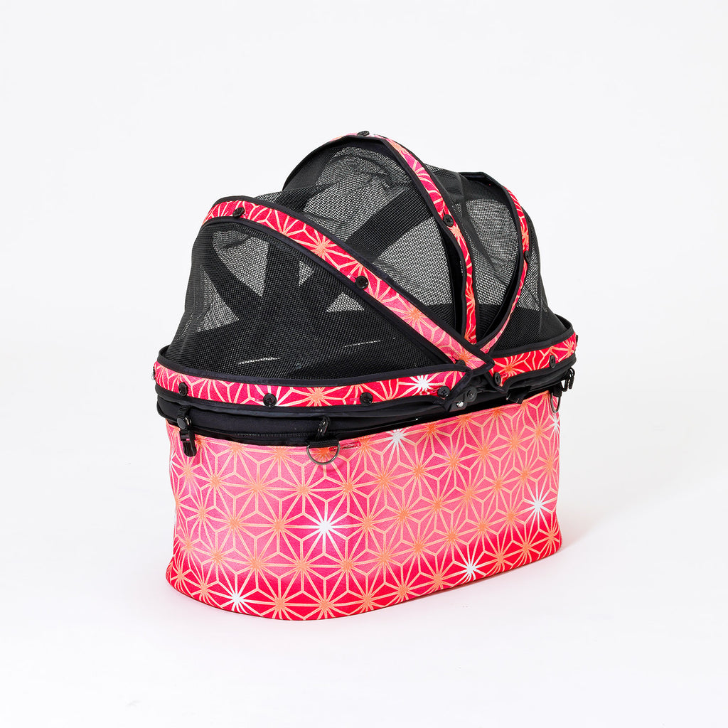 着せ替えるだけで、和モダン”──春も秋も主役になる一台に。 ? まずはこの3つが魅力 1. いつものカートが一瞬で華やぐ、着せ替えカバー ミアキスにサッとかぶせるだけで、和の世界観に早変わり。 上品カラーは、どんな毛色にも映える万能デザインです。 2. 数量限定生産|柄の出方がすべて一点モノ 生地の取り位置によって表情が異なるため、まさに“世界でひとつ”。 あなただけの特別な一枚が届きます。 3. 年中使えるデザイン性+機能性 春のお花見、夏の祭り、秋の紅葉シーンにもマッチ。 六角形のひし形を結び付けたこちらの幾何学文様は、麻の葉の形を文様化した連続文様であり、「麻の葉繋ぎ」ともよばれております。麻は生命力が強く、手を掛けなくてもまっすぐに大きく育つことから、成長の祈りをこめて赤ちゃんや子どもの着物に多用されました。また、模様そのものに邪気を払う力があると信じられ、聖なる植物として祀られてきました。天使のカート・麻霧(あさぎり)は、愛犬・愛猫・ペットの成長と健康を願いデザインされたモデルです。 ※色・柄の出方は一点一点異なります。商品の特性上、生地の取り位置によりどうしても絵柄の出方・ニュアンスなど多少の個体差が生じ、画像と表情が異なることがございます。 また柄が縫い合わせ部分で必ずしも合っていないことがございます。ご了承くださいませ。 ※お届け日:即納